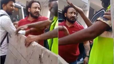 फॉर्च्यूनर से निकला गुंडागर्दी करता शख्स, सफाईकर्मी को थप्पड़ मारकर पिस्तौल तानी, गाली-गलौज का वीडियो सोशल मीडिया पर आग की तरह फैला