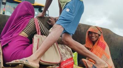 जेसीबी की बकेट से गर्भवती को कराया बहता नाला पार, दूसरी ओर खड़ी थी एम्बुलेंस