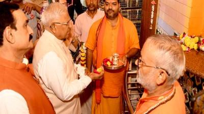राज्यपाल मंगुभाई पटेल ने दतिया शक्तिपीठ में की माँ पीताम्बरा की पूजा अर्चना