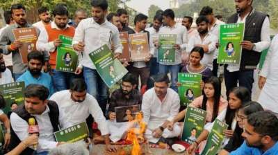 भोपाल में बारिश के बीच नर्सिंग छात्राओं संग सड़क पर बैठे NSUI कार्यकर्ता, पुलिस ने किया गिरफ्तार