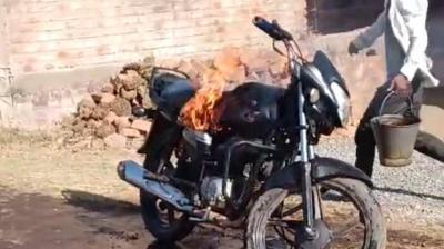 पुरानी रंजिश में युवक ने पेट्रोल डालकर फूंकी बाइक, इलाके में मचा हड़कंप