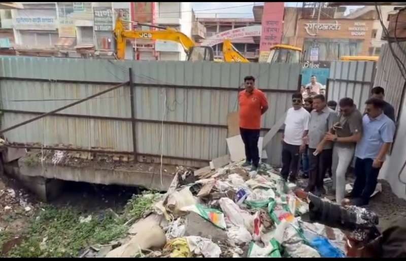 इस दौरान बारिश से पहले ड्रेनेज का अवलोकन करते हुए पाया कि किसी ने लोहे की चादरो से नगर के मुख्य नाले को ढक रखा है ओर वहा गंदगी का अंबार है । इस मोके पर नगर निगम टीम ओर हेल्थ ओफिस मोजूद रहे ।