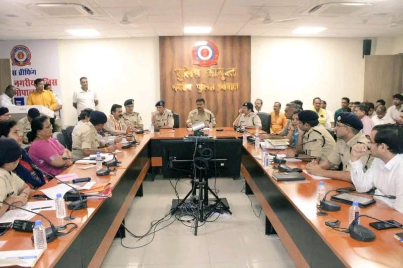 दैनिक द लाॅयन सिटी - भोपाल: दिनाँक 28 सितंबर 2025- दुर्गाउत्सव गरबा रामलीला रावण दहन चल समारोह प्रतिमा विसर्जन के दौरान आमजन की सुरक्षा एवं शांति व्यवस्था के मद्देनजर पुलिस आयुक्त श्री हरिनारायणाचारी मिश्र द्वारा आज दोपहर कमिश्नर कार्यालय सभागार में पुलिस व प्रशासनिक अधिकारियों तथा हिन्दू उत्सव समिति की संयुक्त बैठक ली गई।