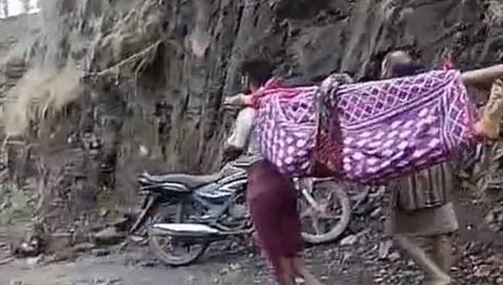 संवेदनहीन महायुति सरकार … कपड़े की डोली में पहुंचाया गर्भवती महिला को अस्पताल!
