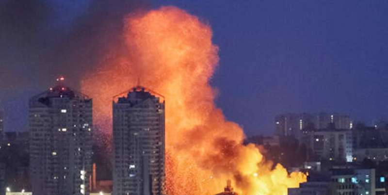 धुएं से भर गया कीव का आसमान