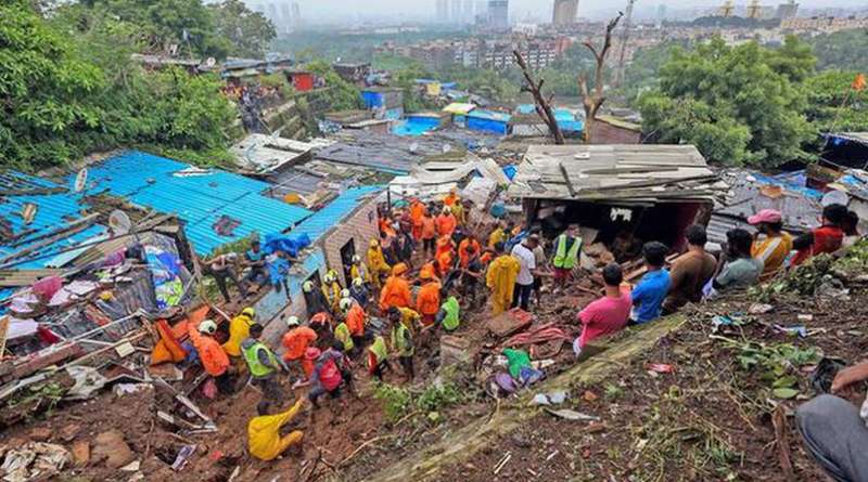 मुंबई में बारिश का कहर: भांडुप में 50 फीट ऊंची दीवार ढही, 5 घर तबाह
