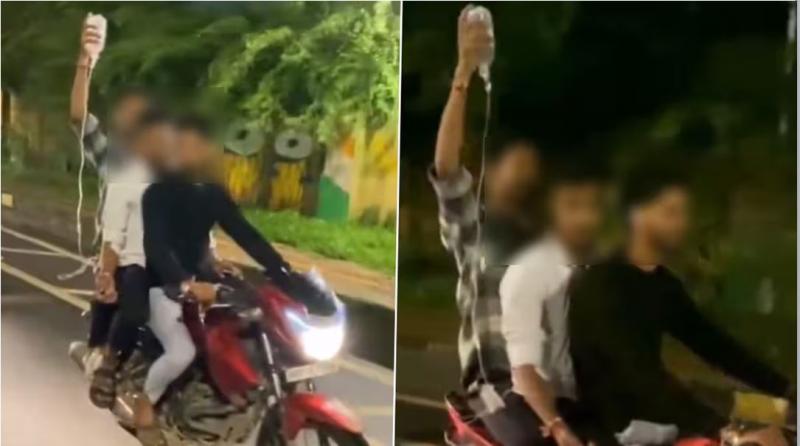 सलाइन लगी हालत में बाइक से शहर घूमा मरीज, दो युवकों की हरकत पर उठा सवाल – इंसानियत या खिलवाड़?