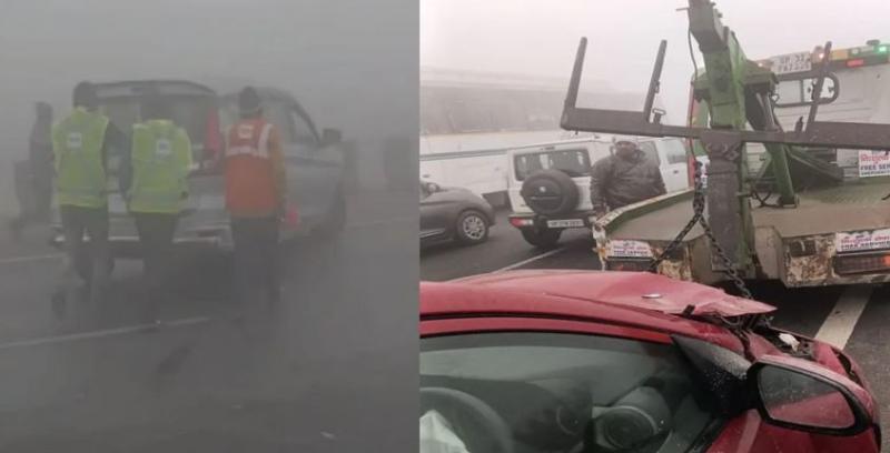 गाजियाबाद में घने कोहरे के कारण हाइवे पर चार जगह भिड़ीं कई गाड़ियां