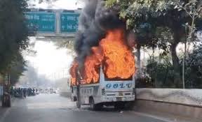 इंदौर में बड़ा हादसा: पटेल ब्रिज के नीचे विधायक गोलू शुक्ला की बस में लगी आग