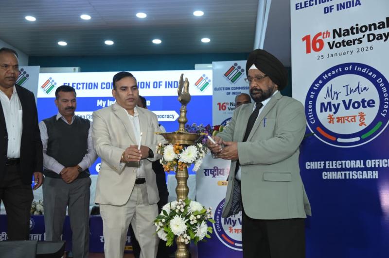 राष्ट्रीय मतदाता दिवस के अवसर पर कार्यक्रम में उपस्थित सभी लोगों को मतदाता शपथ दिलाई गई।कार्यक्रम में नव मतदाताओं और निर्वाचन कार्यों में उल्लेखनीय योगदान देने वाले अधिकारियों-कर्मचारियों को और वर्ष 2025 के लिए सर्वश्रेष्ठ जिला निर्वाचन पुरस्कार अंतर्गत विभिन्न श्रेणियों में उत्कृष्ट कार्य करने वाले जिलों को सम्मानित किया गया। जिसमें ‘नवाचार आधारित मतदाता जागरूकता पहल’ के लिए दक्षिण बस्तर दंतेवाड़ा जिले को, ‘निर्वाचन प्रबंधन एवं व्यवस्थापन (लॉजिस्टिक्स)’ के लिए सूरजपुर जिले को, ‘प्रशिक्षण एवं क्षमता निर्माण’ के लिए दुर्ग जिले को तथा ‘निर्वाचन में प्रौद्योगिकी का प्रभावी उपयोग’ के लिए जशपुर जिले को सम्मानित किया।