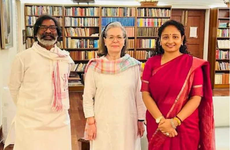 झारखंड के मुख्यमंत्री हेमंत सोरेन ने शनिवार को देश की राजधानी दिल्ली में कांग्रेस संसदीय दल की अध्यक्ष सोनिया गांधी से मुलाकात की. सोनिया गांधी से इस मुलाकात के दौरान हेमंत सोरेन की पत्नी कल्पना सोरेन भी मौजूद रहीं. इस मुलाकात की तस्वीर भी सामने आई है. सोनिया गांधी से मुलाकात करने के बाद सीएम हेमंत सोरेन ने कहा कि जेल से बाहर आने के बाद सोनिया गांधी के साथ हमारी मुलाकात नहीं हुई थी. इसलिए मैं उनसे मिलने आया हूं.