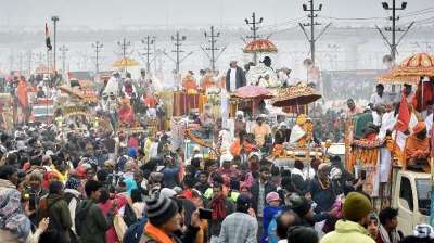 प्रयागराज। महाकुंभ मेले में श्रद्धालुओं को ठंड का प्रकोप झेलना पड़ रहा है। स्नान के लिए निकाली जा रही शोभायात्रा में आह्वान अखाड़े के महंत अजय गिरि रथ पर बैठै-बैठे...