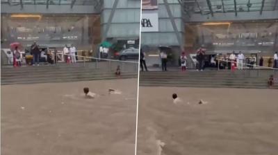 मुंबई बारिश ने ओबेरॉय मॉल को बनाया स्वीमिंग पूल, सोशल मीडिया पर लगे मजेदार तंज