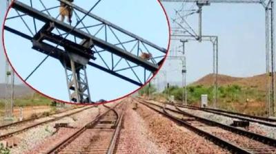 बंदरों से निपटने को रेलवे की तकनीकी चाल, नहीं चढ़ पाएंगे खंभों पर
