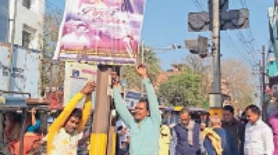नगर निगम में हटाए पोस्ट कटाऊट।