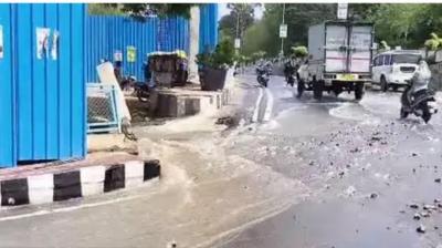 भोपाल में लोक भवन के सामने सड़क धंसी, पानी बहने से बिगड़े हालात