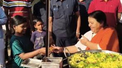 उमा भारती ने टीकमगढ़ में पोहे-जलेबी बेचकर जताया विरोध