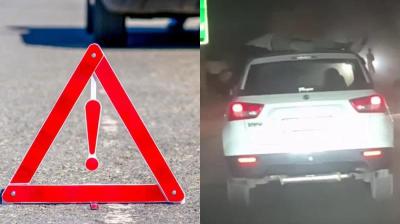 कार ने बाइक को उड़ाया, उछलकर कांच में फंसा युवक, कार चालक 200 मीटर तक लेकर दौड़ा