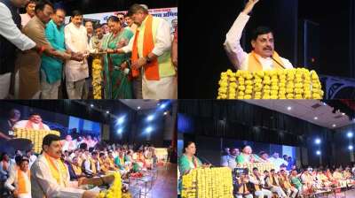 मुख्यमंत्री डॉ. मोहन यादव, राष्ट्रीय उपाध्यक्ष श्रीमती वसुंधरा राजे एवं प्रदेश सरकार के मंत्री श्री कैलाश विजयवर्गीय ने आज इंदौर के रवींद्र नाट्य गृह में डॉ. अंबेडकर सम्मान अभियान के अंतर्गत आयोजित संगोष्ठी को किया संबोधित