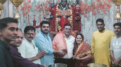 धार्मिक तरीके से मां के मंदिर में मनाई शादी की सालगिरह।