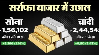 सोना-चांदी की कीमतों में उतार-चढ़ाव जारी है। बुलियन की दरों के अनुसार चांदी की कीमतों में 6700 रुपये की तेजी देखने को मिली। वहीं सोना भी 1500 रुपये तक महंगा...